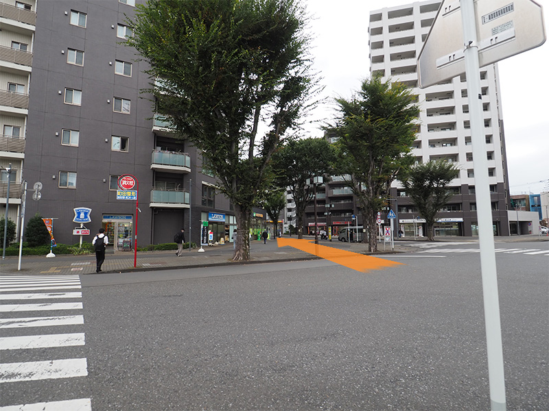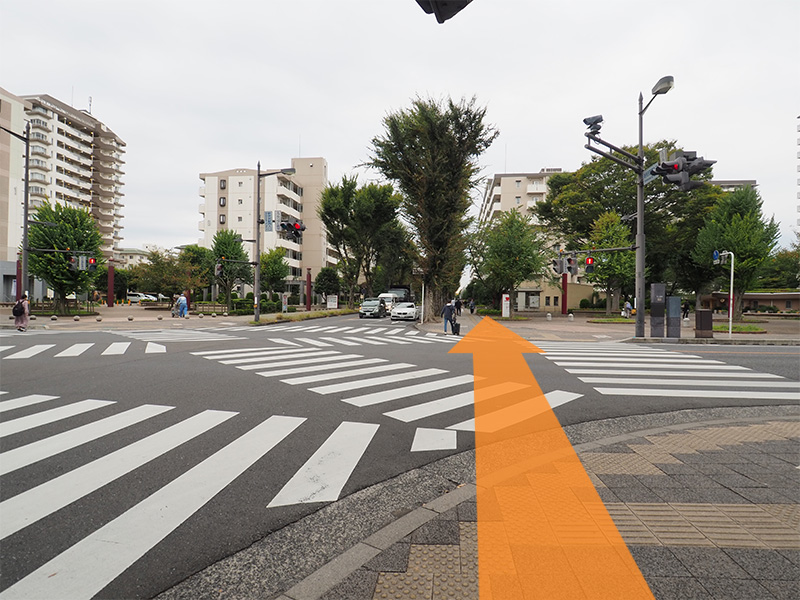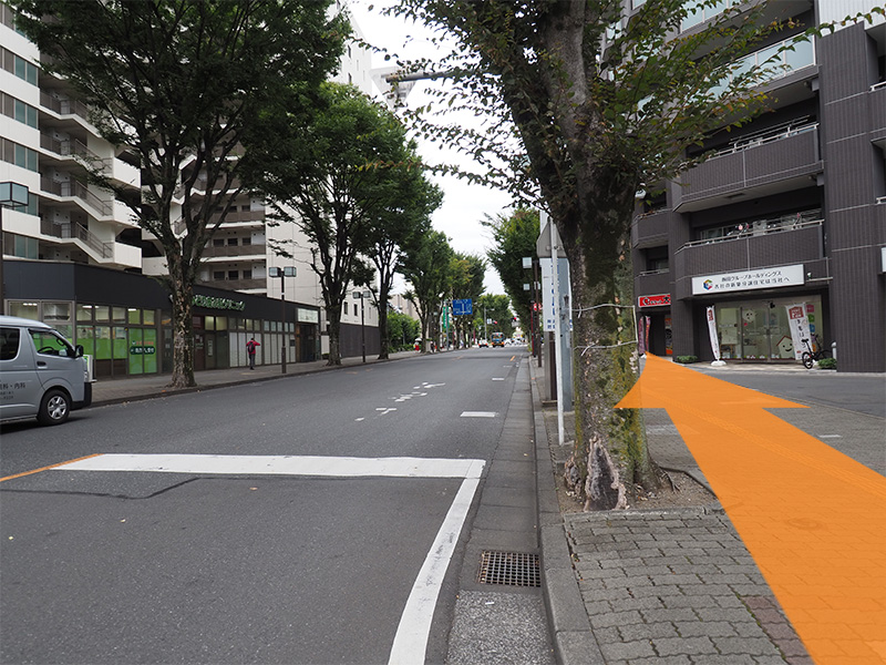 3.横断歩道を渡り、けやき並木通りに沿って直進します